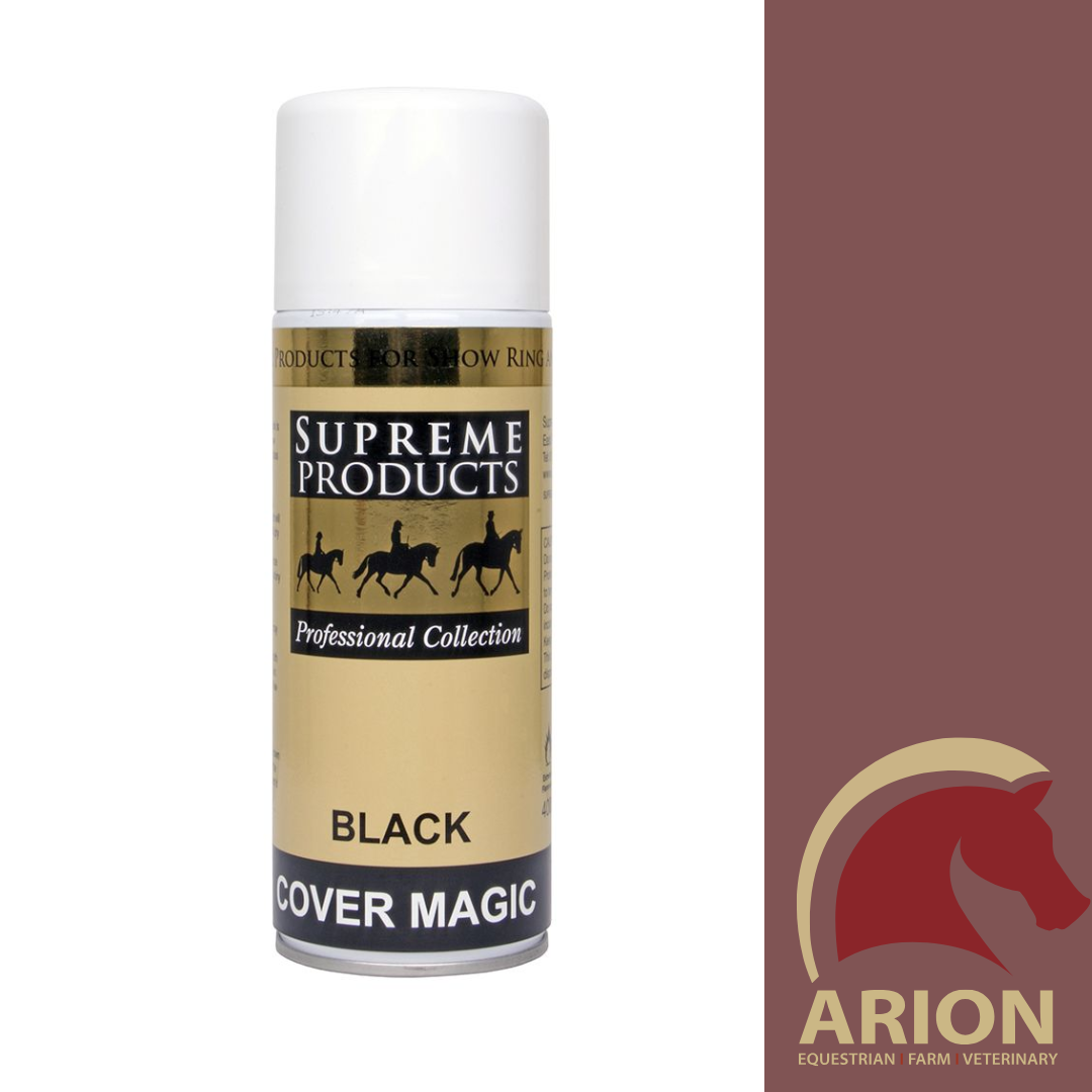 Supreme Products Cover Magic White can be used to cover over marks and scars as well as to whiten socks and cover over last minute stains. Spray from a distance of approx. 10 inches through the tail to cover stains and brush with a soft brush to disperse.