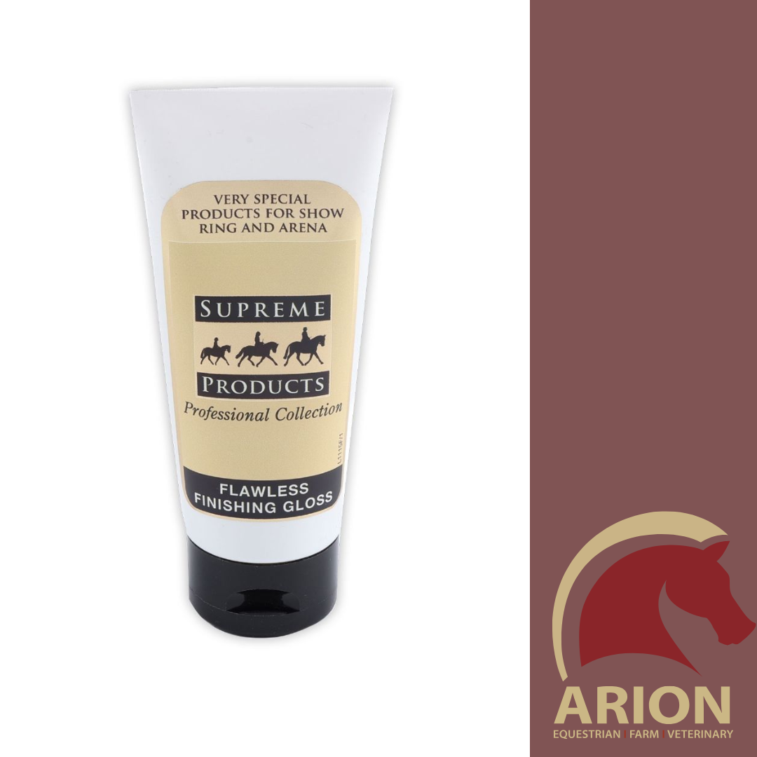 Use Supreme Products Flawless Finishing Gloss to enhance your horse’s best features. Ideal for plaits, the top and sides of the tail, and around the eyes and muzzle. It adds a glamorous shine, works alone or over make-up, and boosts natural colour. Packaged in an easy, mess-free squeezy tube, it’s a grooming essential that delivers a flawless finish every time. Contains UV filters for sun protection.