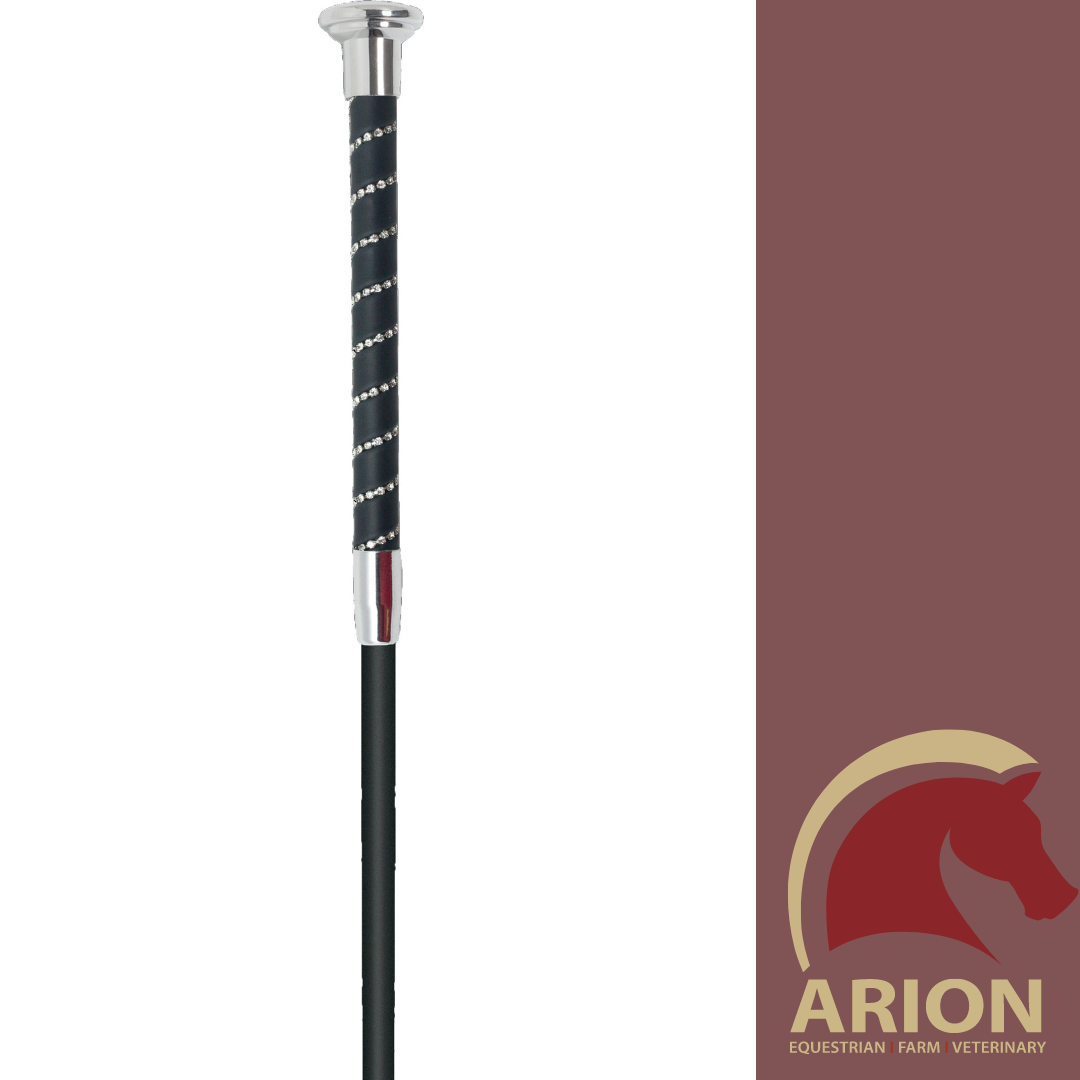 Fibreglass shaft with SilkTouch coating, synthetic leather handle, polished steel cap.Crystal wrapped grip.Length: 110cm