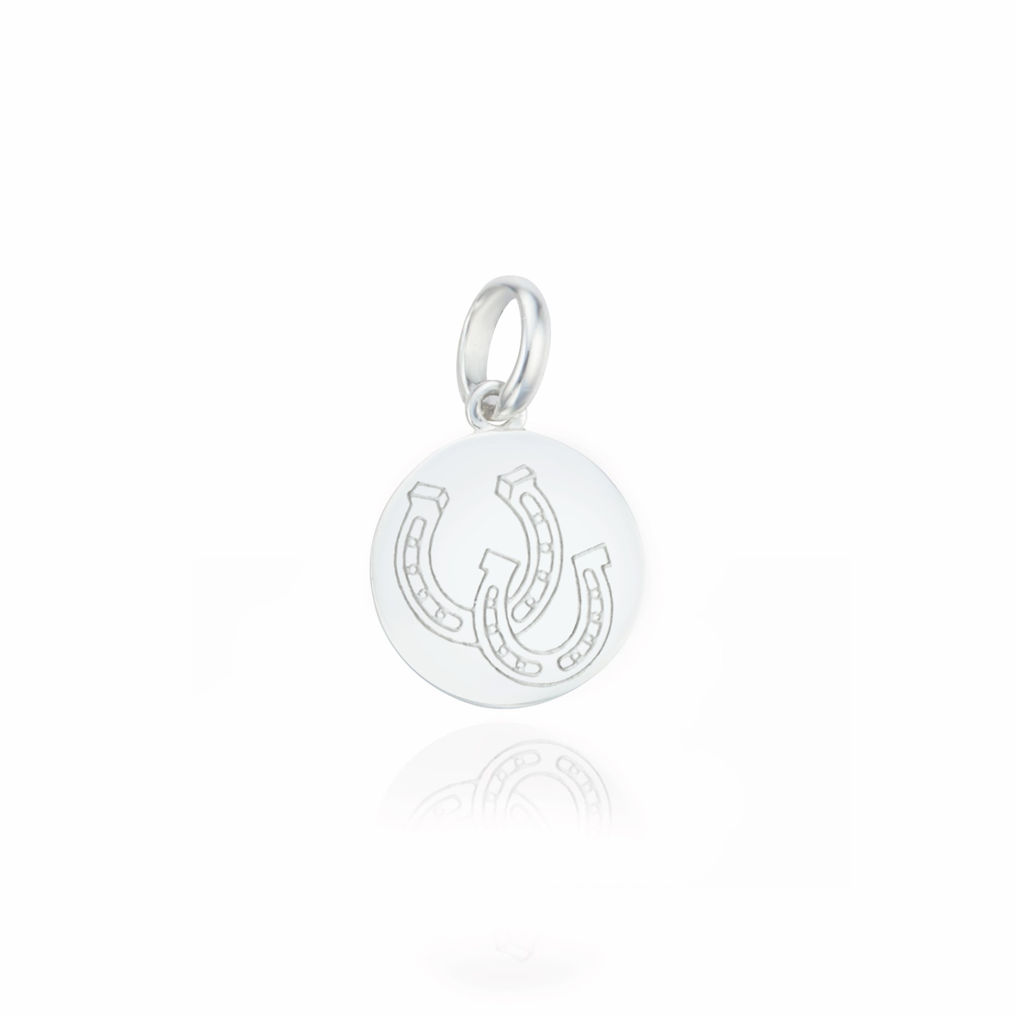 This stunning piece can be worn as either a charm or a pendant. It features the horse shoe which is engraved onto the silver disc.