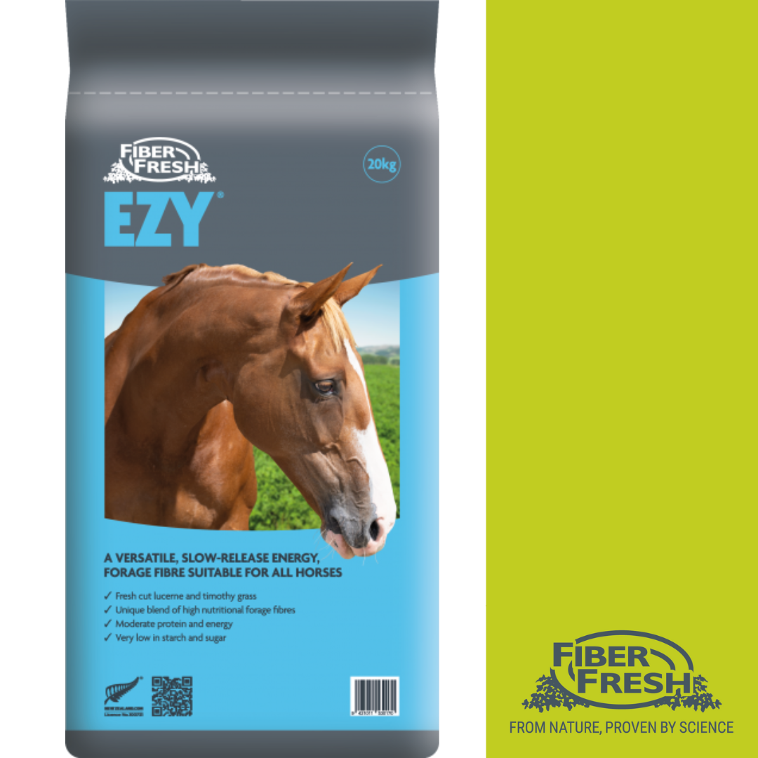 Fiber Ezy® can be fed alongside or substituted for fresh pasture/hay feeding or mixed with hard feeds as a high-quality forage fibre source. Fiber Ezy® is ideal as the primary forage feed to aid in the management of metabolic and digestive health in horses. It is a common-sense fibre choice for a calm and steady performance or for horses sensitive or prone to laminitis, or other sugar and starch-sensitive conditions. Fiber Ezy® is completely safe as a consistent base forage and is suitable for all horses.